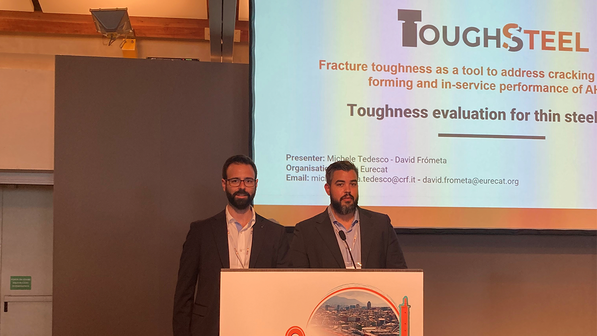 ToughSteel partners David Frómeta, coordinator of the ToughSteel project and researcher at Eurecat’s Metallic and Ceramic Materials Unit, and Michele Maria Tedesco,…
